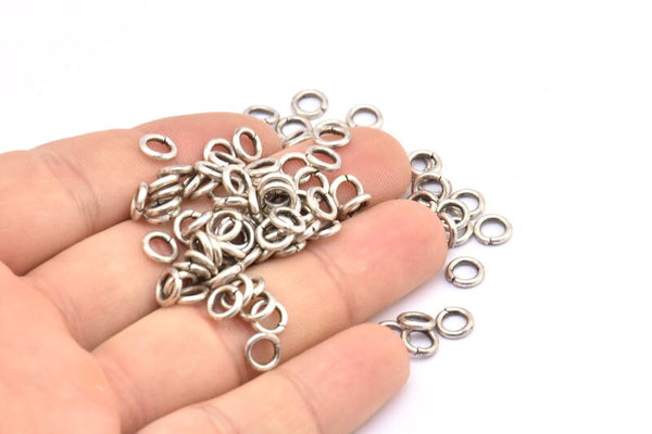 6mm Jump Ring, 100 Antique Silver Plated Brass Jump Ring Connectors Findings (6x1.2mm) A0329 A0636