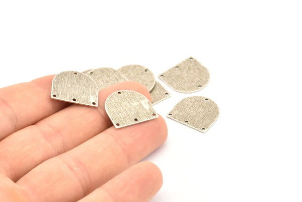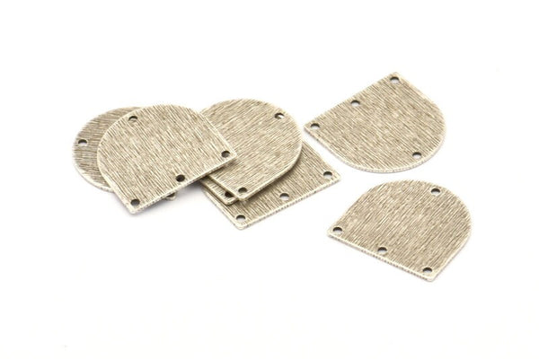 Antique Silver Plated Brass Textured D Shaped Connectors With 4 Holes