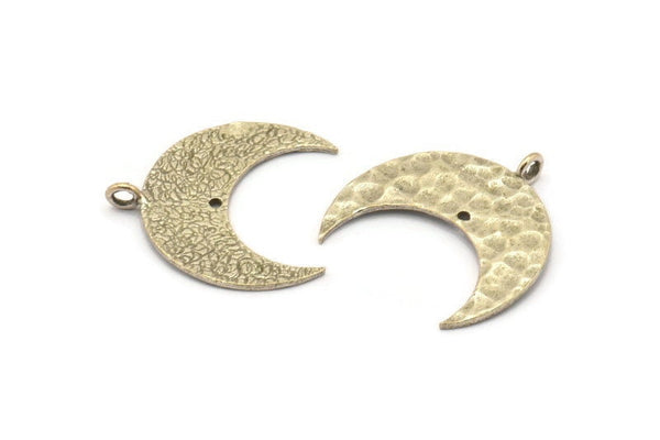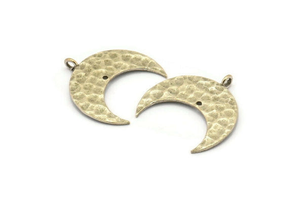 Hammered Crescent Pendant, 2 Antique Silver Plated Brass Hammered Crescent Pendants With 1 Loop and 1 Hole (25x10x1mm) U146 H0434