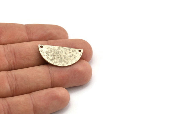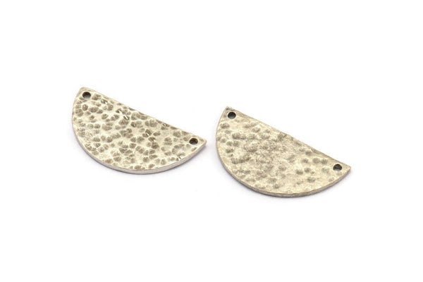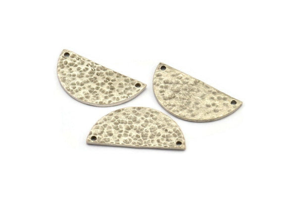 Hammered Half Moon, 4 Hammered Antique Silver Plated Brass Semi Circle Blanks with 2 Holes (30x15x1.2mm) N0390 H0133