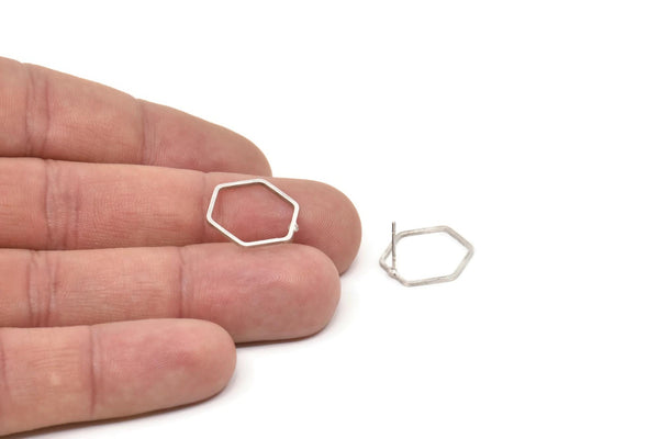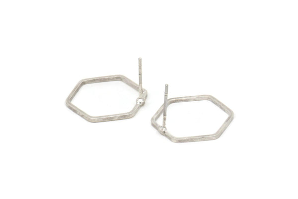Antique Silver Plated Brass Hexagon Stud Earrings
