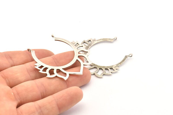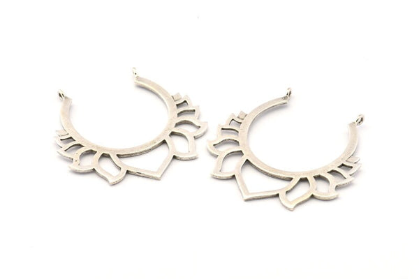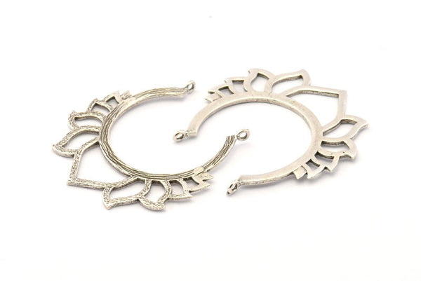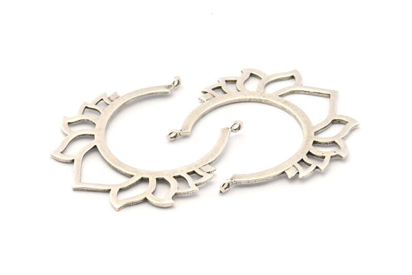 Antique Silver Plated Brass Hammered Lotus Flower Pendants With 2 Loops