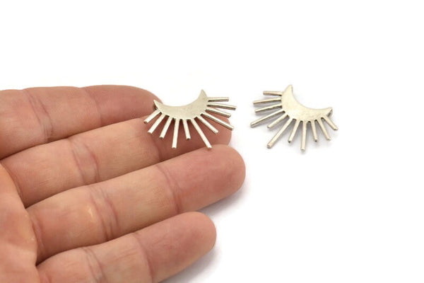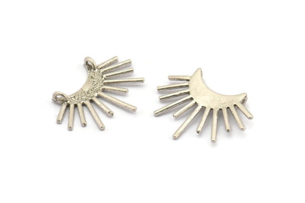Antique Silver Plated Brass Crescent Moon Pendants With 2 Loops