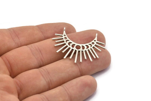 Antique Silver Plated Brass Crescent Pendants With 2 Loops