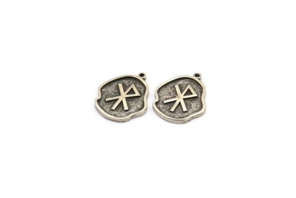 Antique Silver Plated Brass Viking Love Symbol Rune Charms With 1 Loop