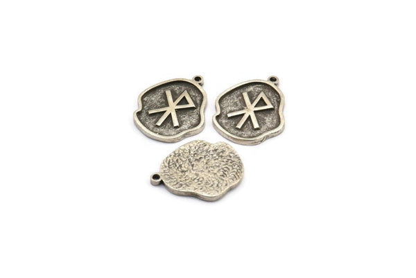 Nordic Runes Charm, 4 Antique Silver Plated Brass Viking Love Symbol Rune Charms With 1 Loop, Norse Viking Runes (19x16x1.5mm) N2051
