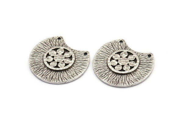 Hammered Antique Silver Plated Brass Semi Circle Pendant