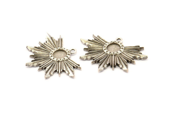 Antique Silver Plated Brass Rosette Charm Pendants With 1 Loop