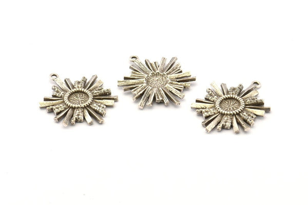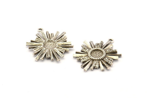 Silver Badge Charm, 2 Antique Silver Plated Brass Rosette Charms With 1 Loop, Pendants, Earrings (29x25mm) N0811