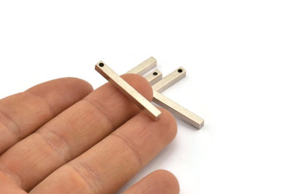 Silver Bar Pendants, 12 Antique Silver Plated Brass Bars, Necklace, Earring Findings (3x3x30mm) D0240