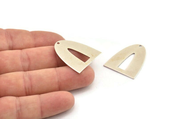 Antique Silver Plated Brass Half Ellipse Shape Charms With 1 Hole