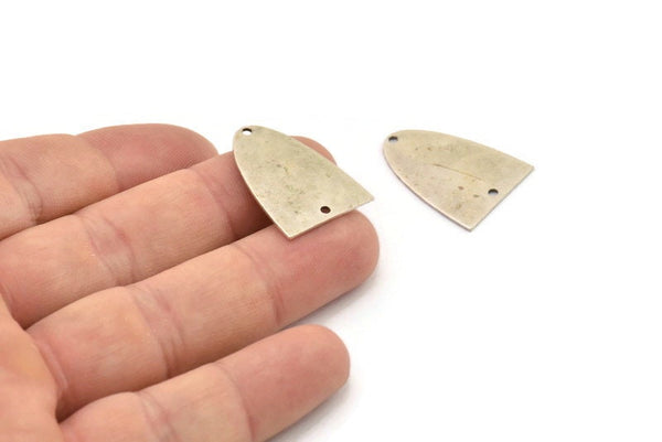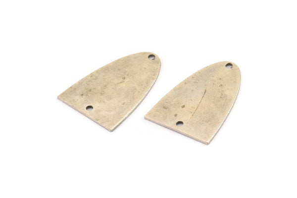 Antique Silver Plated Brass Half Ellipse Shape Charms With 2 Holes