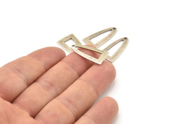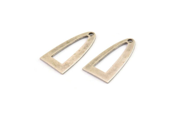 Silver Charm, 6 Antique Silver Plated Brass Half Ellipse Shape Charms With 1 Hole, Pendants, Earrings, Findings (23x12x0.70mm) B0231