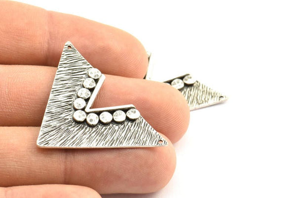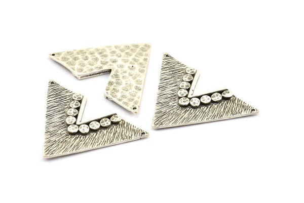 Antique Silver Plated Brass Geometric Chevron Pendants with 2 Holes