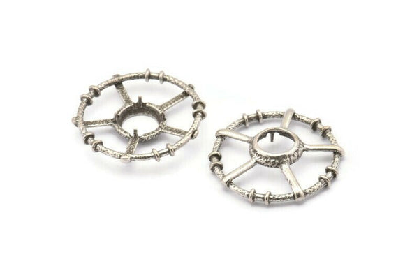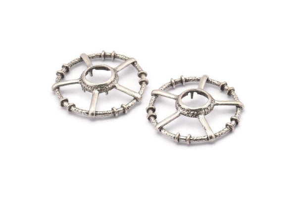 Antique Silver Plated Brass Round Pendants - Pad Size 10mm