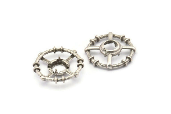 Antique Silver Plated Brass Round Pendants - Pad Size 8mm