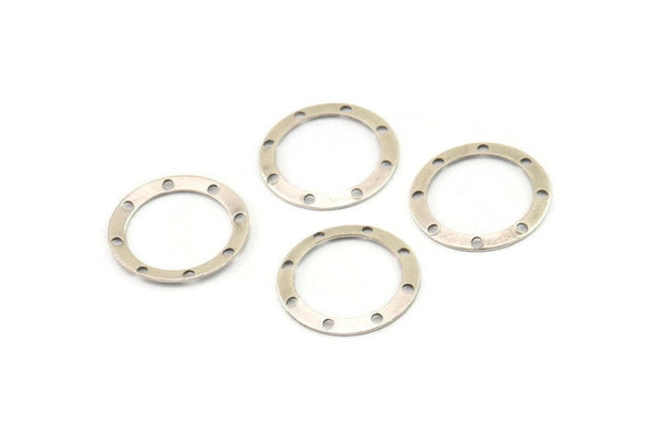 Silver Circle Charm, 24 Antique Silver Plated Brass Holes Circle, Round Connectors, Charms, Pendant,findings (17mm) Brs 531 A0194