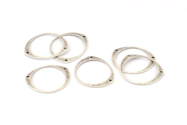 Antique Silver Plated Brass Textured Circle Connectors With 2 Holes