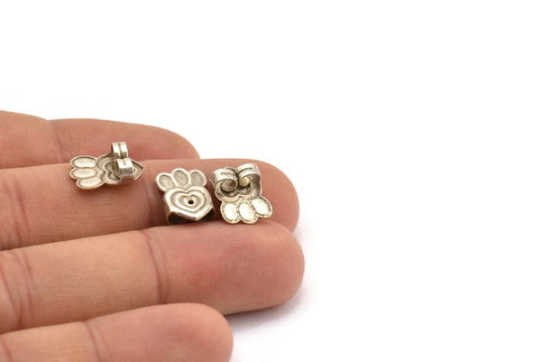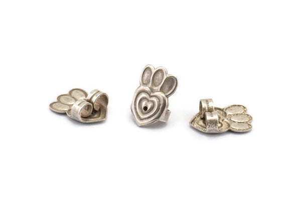 Antique Silver Plated Brass Heart Earring Back Stopper, Earring Stud Back Stoppers