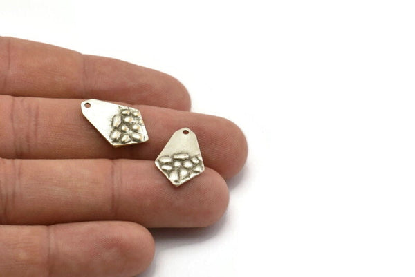 Antique Silver Plated Brass Diamond Charms With 1 Hole
