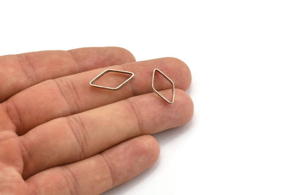 Antique Silver Plated Brass Wide Cut Open Diamond Ring Charms