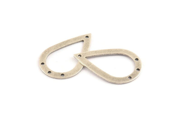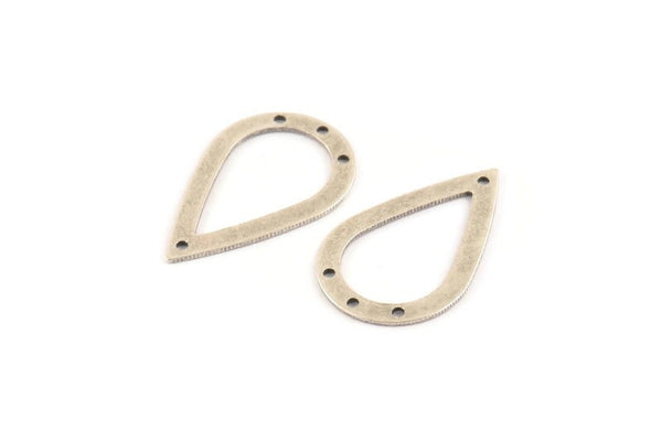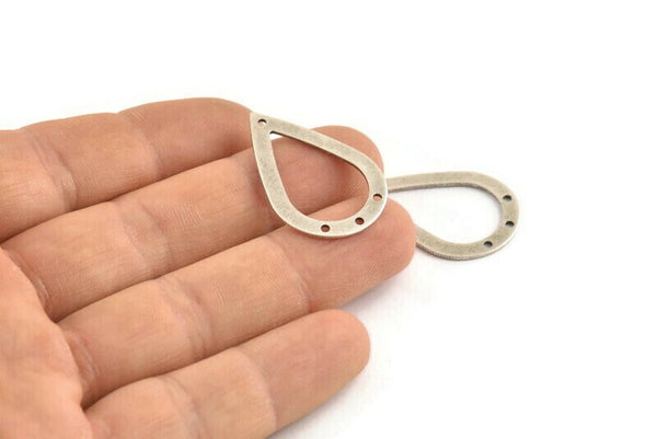 Antique Silver Plated Brass Drop Charms With 4 Holes