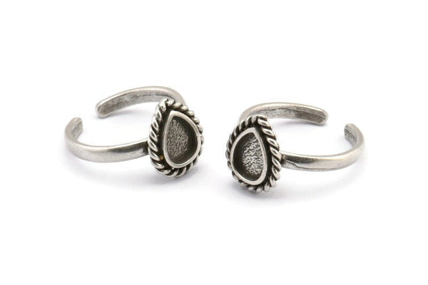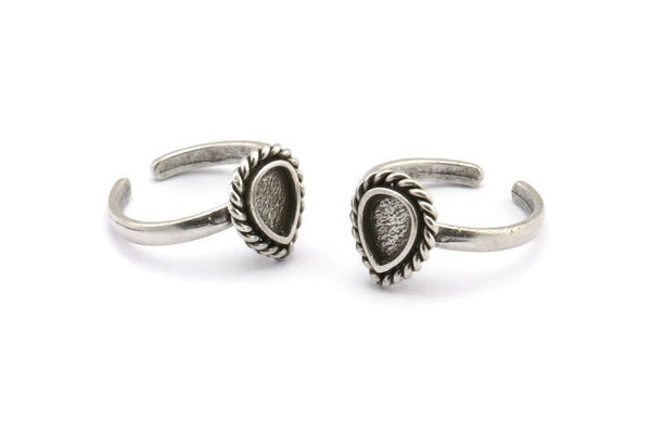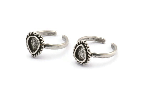 Silver Drop Rings, 2 Antique Silver Plated Brass Adjustable Rings - Pad Size 8x6mm N2095 H1439