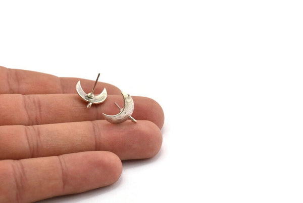 Antique Silver Plated Brass Moon Earring Posts With 1 Loop