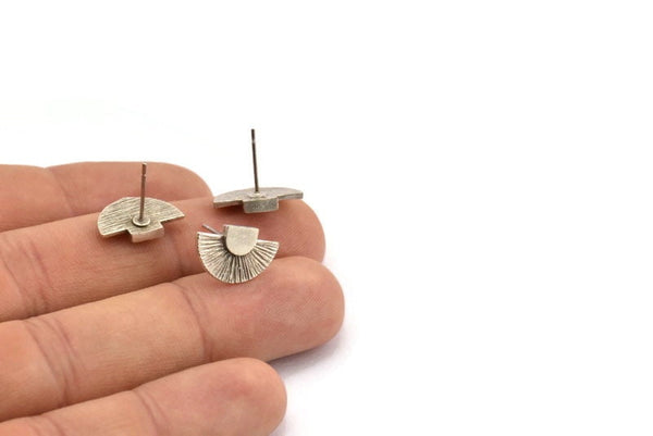 Silver Earring Posts, 6 Antique Silver Plated Brass Semi Circle Earring Stud (16x10mm) N0797 H1185