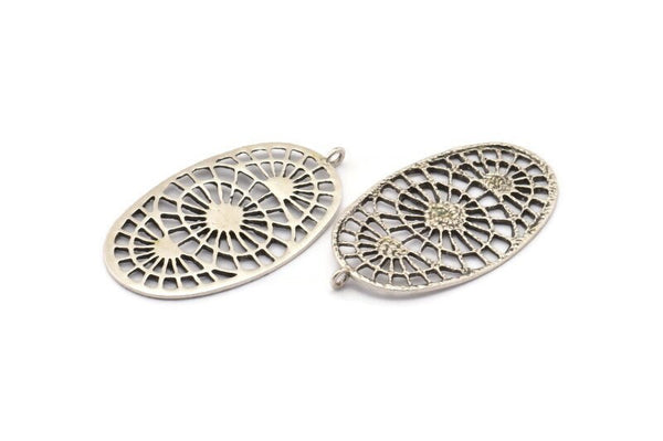 Silver Ethnic Pendant, 2 Antique Silver Plated Brass Ethnic Pendants With 1 Loop, Earring Findings, Charms (45x25x1.1mm) E176 H0670