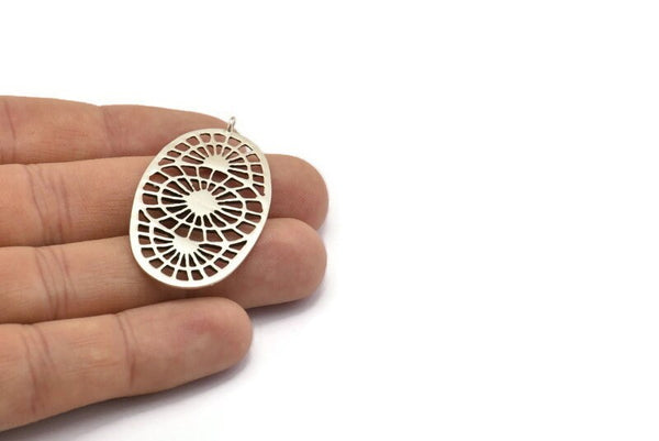 Antique Silver Plated Brass Ethnic Pendants With 1 Loop