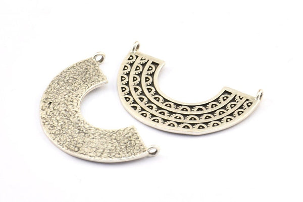 Silver Ethnic Pendant, 2 Antique Silver Plated Brass Ethnic Pendants With 2 Loops (36x22mm) E254