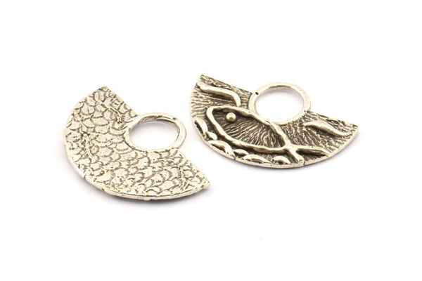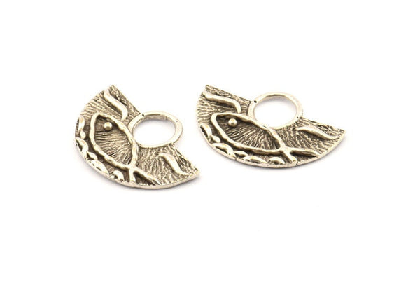 Antique Silver Plated Brass Semi Circle Fish Figure Pendants
