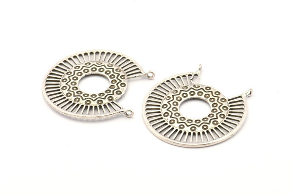 Antique Silver Plated Brass Ethnic Motif Pendants With 2 Loops