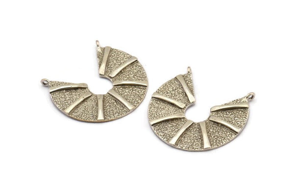 Antique Silver Plated Brass Textured Pendants With 2 Loops