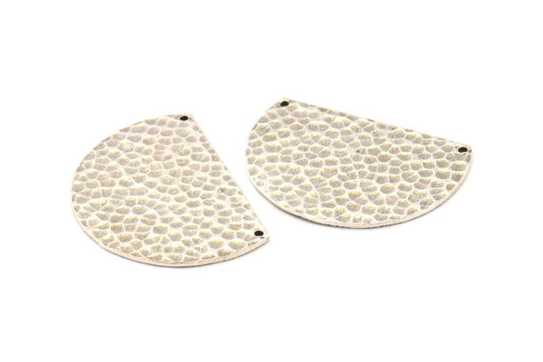 Hammered Antique Silver Plated Brass Semi Circle Charms With 2 Loops