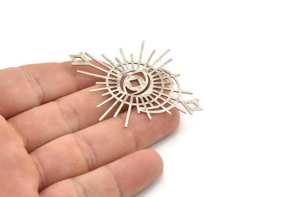 Antique Silver Plated Brass Eye And Sun Shaped Charms With 2 Triangle Loops