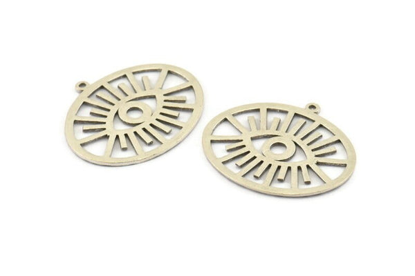 Silver Eye Charm, 2 Antique Silver Plated Brass Eye Charms With 1 Loop, Pendants, Earrings (36x31x1mm) N1102