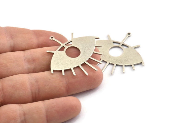 Antique Silver Plated Brass Eye Charms With 1 Loop