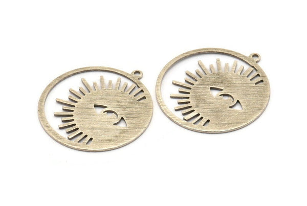 Textured Antique Silver Plated Brass Eye Charms With 1 Loop