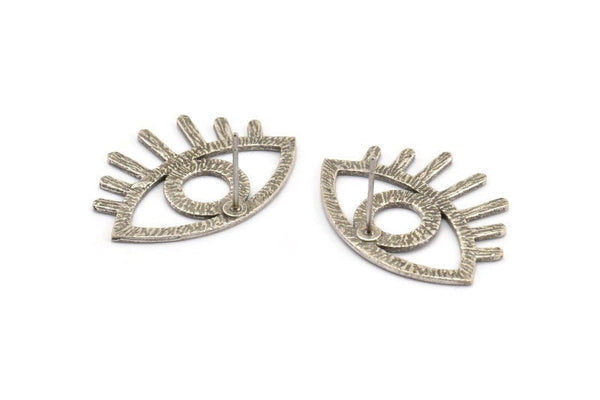 Silver Eye Earring, 4 Antique Silver Plated Brass Eye Stud Earrings (29x1mm) N1030 H1186