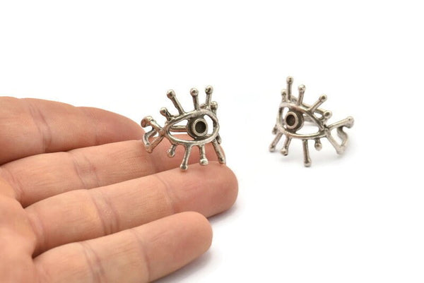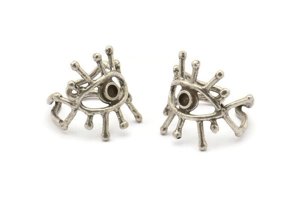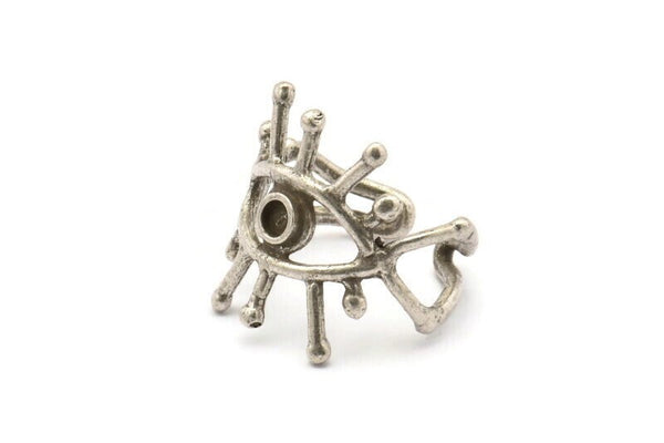 Silver Eye Ring, Antique Silver Plated Brass Eye Ring With 1 Stone Settings - Pad Size 3mm N1892 H1554