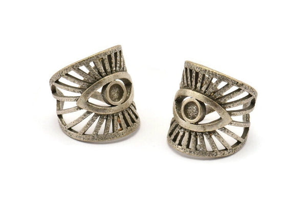 Silver Eye Ring, Antique Silver Plated Brass Eye Ring With 1 Stone Settings - Pad Size 4mm N1789 H1520