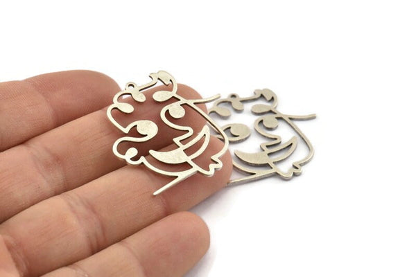 Antique Silver Plated Brass Face Charms With 1 Loop