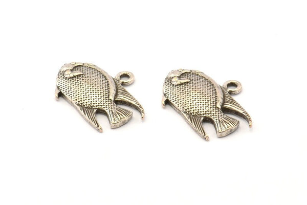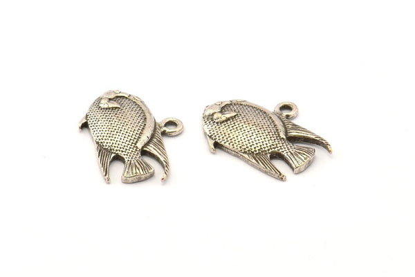 Antique Silver Plated Brass Fish Charm Earrings With 1 Loop