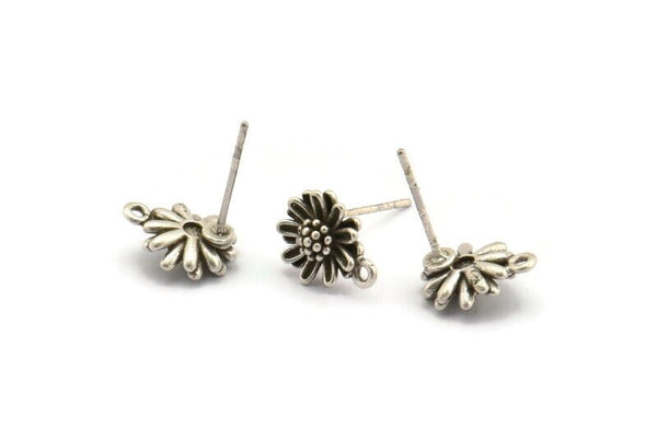 Antique Silver Plated Brass Flower Stud Earrings