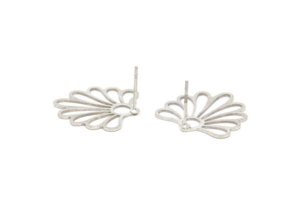 Antique Silver Plated Brass Flower Shaped Stud Earrings