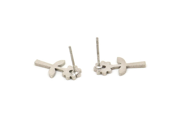 Silver Flower Earring, 8 Antique Silver Plated Brass Sunflower Shaped Stud Earrings (16x8x1mm) A3797