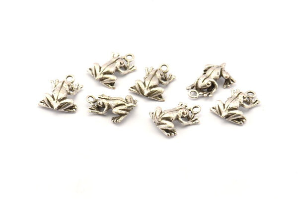 Silver Frog Charm, 6 Antique Silver Plated Brass Frog Charm Earrings With 1 Loop, Pendants, Findings (11x16mm) N0907