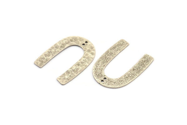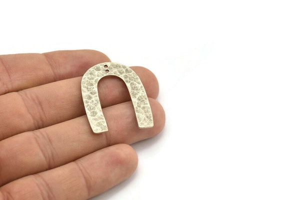 Hammered Antique Silver Plated Brass U Shaped Pendants With 2 Holes